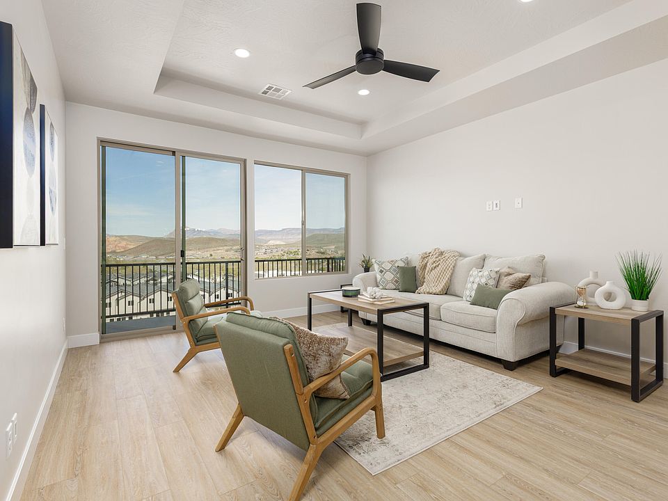 This beautiful walk out basement townhome has a high end feel with breathtaking views seen from the living room and back patio! Upstairs features a front room office, an open living room/kitchen, a spacious master suite with a bright master bathroom. Downstairs there are 2 additional bedrooms and a kitchenette/living room combo. HOA covers the building insurance. Call us today for more information on these high end townhomes!