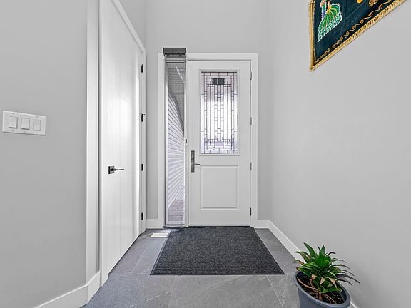 Welcome to your dream home! This stunning custom-built residence showcases TWO OPWN TO BELOW areas and UPGRADED finishes throughout. You’ll love the STAMPED CONCRETE driveway and FRONT ATTACHED DOUBLE GARAGE offering beauty and easy winter maintenance. Step inside to a spacious entrance with 19ft ceilings, formal living and dining, plus a main floor bedroom with FULL BATH—perfect for guests or a home office. The OPEN TO ABOVE family room fills the home with natural light, while the chef’s kitchen boasts ceiling-height cabinets, BUILT-IN wall oven & microwave, and a large ISLAND ideal for gatherings. Upstairs features GLASS RAILINGS, 3 SPACIOUS bedrooms, and a LUXURIOUS primary suite with HIS & HER walk-in closets and a SPA-inspired ensuite. Enjoy 9-ft ceilings, 8-ft DOORS, upper laundry, and a SIDE ENTRANCE for a future legal suite. Comes move-in ready with FINISHED DECK, LANDSCAPING, BLINDS, and partial fencing. A true gem in Trumpeter!
