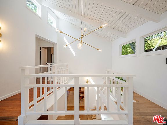 Welcome to the ultimate Topanga retreat, where modern upgrades meet timeless canyon charm. Nestled on a quiet, hidden street off Topanga Canyon Blvd, this treasure offers the perfect balance of privacy, style, and connection to nature. Inside, an open entry concept features soaring vaulted ceilings extending both levels and a modern chandelier welcoming bright natural light. Upstairs, the space leads to two bedrooms, and a crisp, updated bathroom with a classic clawfoot tub. The spacious primary suite features a comfortable additional space to relax or work, and opens to its own private deck, the perfect spot to enjoy your morning coffee while taking in tree-lined canyon views. The large deck wraps around for great outdoor entertaining under delightful string lighting. The main floor effortlessly blends contemporary design with Topanga character. The recently remodeled kitchen boasts continuous-grain walnut cabinetry, white quartz countertops, high-end built-in appliances, and a generous island with waterfall, ideal for cooking and entertaining. Large double doors open to a beautifully landscaped fully-fenced flat backyard, inviting a harmonious indoor-outdoor flow. The dining area is framed by walnut finishes perfect for gatherings, while the cozy living room invites movie or game nights. A third bedroom with a remodeled en-suite bathroom adds comfort and flexibility. The extensive list of upgrades includes beautiful oak wood flooring, new windows and doors throughout, and a whole-house water filtration system. Step through the living room to discover a bonus studio/gym and direct access to the driveway, complete with automatic gate and EV charger. In the vicinity you'll find central access to the best of the westside and the valley communities. Featuring scenic drives to nearby beaches, Santa Monica, Malibu and Calabasas. Enjoy local gems including the Topanga Community Center, playground and ballfield, weekly farmers market, Food Truck Fridays, and charming coffee shops and cafes, combining peaceful canyon living with vibrant neighborhood amenities.