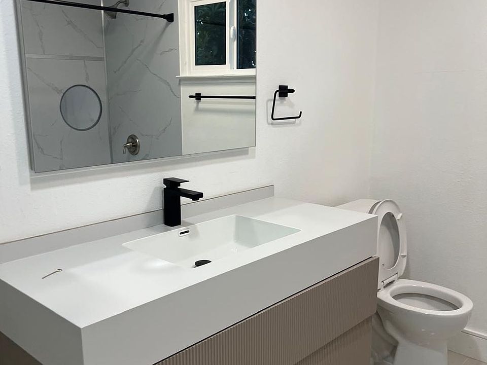 New laminate flooringNew interior paintNew recessed lightsNew kitchen cabinetsNew bathroom vanity