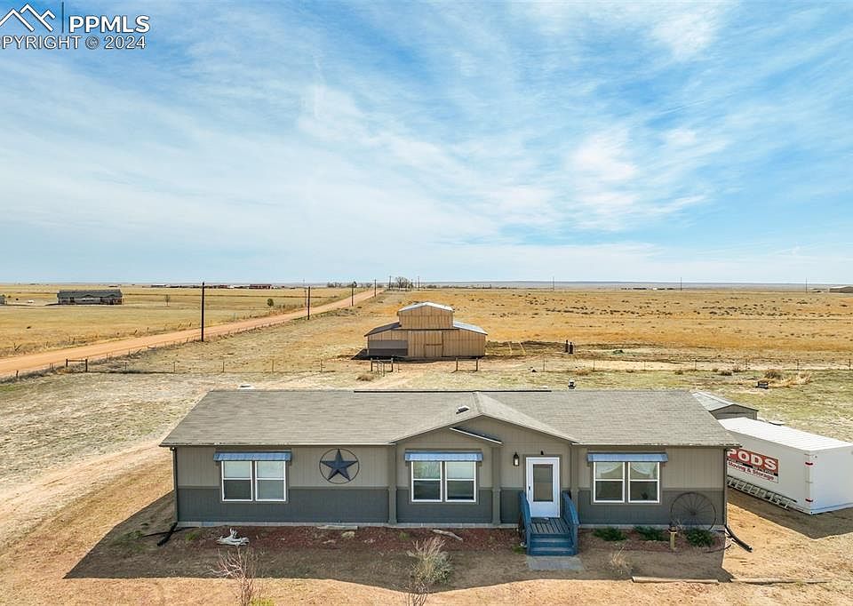 Come Enjoy this Beautifully Appointed Ranch Home on Fenced 40 Acres w/Great Peak/Mtn Views With 48x48 8-10 Car Garage -OR- 4-6 Stall Barn!!! Easy Drive to Shriever AFB or Ft Carson!! This Lovely Home has so Many Extra Special Features to Include Beamed Ceilings w/Crown Molding, Large Living Room, Huge Kitchen Area w/Large Island & Dining Area that all Walk-Out to Front & Back Yards!! New Carpet & Flooring. New Interior & Newer Exterior Paint and New Blinds!! Open & Airy Floor Plan!! Spacious Master w/Walk-In Closet & 5 Pc Bath w/Custom 'Walk-In' Shower *Large 2nd & 3rd Bedrooms w/Walk-In Closets *1 Mile from Paved Rd (Peyton Hwy). Very, Very Refreshing Home & Property!! A Must See!!