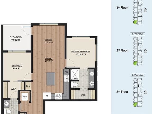 Ground floor unitBig patioGourmet kitchen with islandStainless steel appliancesQuartz countertopsWhite cabinets
