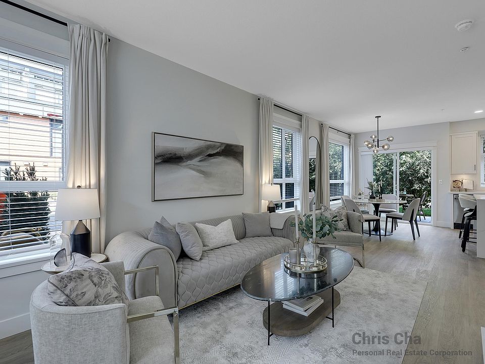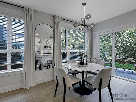 KENSINGTON GATE!! RARE DUPLEX / 2,615sf/ 4BED + REC + 4BATH/ UNBEATABLE PRICE!/ BEST LOCATION / LOW STRATA FEE $399!!/ QUIETER side of the complex. Ground-level entry, laminate flooring, heated bathroom floors, A/C & heat pump, electric fireplace. Expansive rec room for office/gym/guest room & storage room. GATED, SAFE underground side-by-side dbl garage and EV charger ready. Ample visitor parkings. East facing patio with BBQ hookup. Low strata fee of $399. The entire top floor is a primary bed with a massive walk-in closet, ensuite, and balcony! Also there is another primary bed on level 2 with ensuite bath. BEST LOCATION - ONLY 1 MINUTE WALK to Lynn Fripps Elementary. Near bus stop, all level schools, shopping, Hwy 1 & Carvolth Bus Exchange. Surrounded by quiet single house neighborhood.