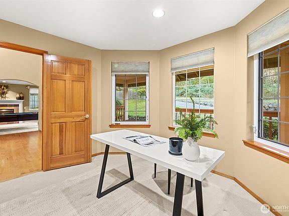 Secluded estate on 5 acres in a gated community! This custom-built home offers privacy, space, w/room for hobbies & animals. You’ll find 4 spacious bedrooms, each w/a walk-in closet, a huge bonus room/flex space, a main floor family room, dedicated office, formal living & dining room. Enjoy an open chef's kitchen w/ high-end appliances, connecting to a large family room perfect for entertaining. Enjoy Maple hardwood floors & covered porches front and back. It's fully fenced; features a fenced lighted sport court, greenhouse, fenced pasture, fenced garden area, livestock pen, shed, & a massive, detached garage/shop wired w/240V power w/ an oversized RV door. Wired for generator. Hot tub pad, RV parking. Surrounded by Keevie Lake Natural Area
