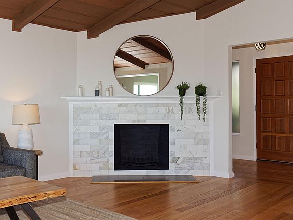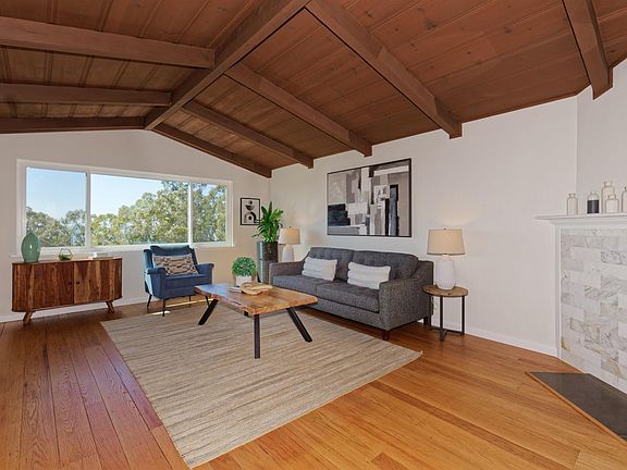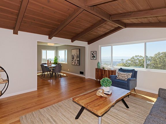 Gorgeous 4 bedroom / 2 bath mid century home with delightful bay views from two levels. This light filled and spacious home features flowing hardwood floors, updated baths, a tasteful and modern cook's kitchen with Professional style 36" Thermador gas range and stainless steel dishwasher, French door refrigerator, wine fridge, reverse osmosis water filtration, quartz counters, island and breakfast bar. West facing dining room offers lovely bay and Mormon Temple views. lower level includes 2 bedrooms, 1 bath, recreation room, laundry area, counter with sink and space for mini-fridge. Plenty of space for relaxation or work. Large deck off recreation room offers bay views, plentiful afternoon sun and room to entertain or just relax outdoors. Lush 480 sq/ft lawn provides plenty of additional space for outdoor activities. Expansive rear yard yard presents possibilities for adding terraced gardens and/or a hillside orchard. Conveniently located minutes away from Highway 13, Montclair Village, Park Blvd. and Joaquin Miller amenities.