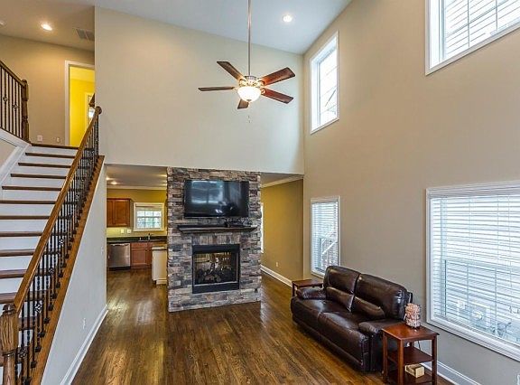 Like brand new!!! Fully loaded and backing up to a gorgeous tree line! Upgrades include wide door frames, see thru gas log fireplace, 5ft tiled master shower with dual shower heads, 1st floor master suite with beautiful crown molding and lit trey ceiling, granite countertops, gorgeous hardwood floors, dual zoned heating/cooling, oversized 80 gallon hot water heater, hot & cold external faucets, hard wired for security system, two laundry rooms (One on first floor & one on second), unfinished walk out basement with finished full bath, french doors and tons of natural light, 14x14 covered deck, 9x14 uncovered deck that can be accessed from the master bedroom, 4ft additional garage length, 400 amp electric service & much more! All within walking distance to Brighton Trail, Garret Morgan Elementary and easy access to I-64, I-75 and Hamburg Pavilion. You don't want to miss this one!!
