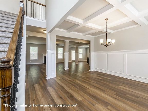 The McKinley plan built by Dan Ryan Builders. 5 bedroom/4 bath home has a gameday porch and exterior wood burning fireplace! The first floor has a formal dining room with coffered ceiling, formal living room, open kitchen with pantry, island, stainless appliances including a gas range, white cabinets, granite and white subway tile backsplash, breakfast room, great room with gas fireplace , guest bedroom & full bath. The master suite is upstairs with a separate sitting area, luxury bathroom with a garden tub, oversized shower, separate vanities, water closet and large walk-in closet. Bedrooms 2 & 3 share a bathroom and bedroom 4 has its own. There is even a huge loft area! Gutters, 10 home warranty, smart home enabled package and wireless security systems are also included in this home. Enjoy all the amenities this active community has to offer including 32 Acres of Lakes, a well-appointed community clubhouse, pool and grilling areas.