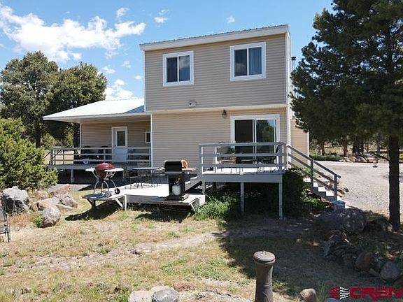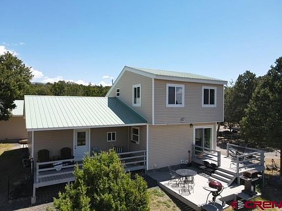 This country home, secluded on a wooded lot with views of the Grand Mesa, sits on 14 +/- acres. No HOA. No Covenants. Add chicken coops, livestock panels, or fencing around the acreage to contain livestock. Enjoy the peaceful setting while relaxing on one of the three Trex-style decks. A detached two-car garage, storage shed, woodshed, and flower gardens are included. Sit on the back deck and enjoy the peaceful serenity of wildlife, sunsets, and nature. Summer brings in a variety of seasonal birds, adding to the ambiance of the quiet evenings. Just minutes from downtown Cedaredge, where amenities include shopping, dining, and an award-winning golf course. Minutes from the top of Grand Mesa, you can hike, fish, hunt, ski, snowmobile, or ATV. This home has three trex-style decks with crisp mountain views. The house is customized with craftsman-style trim, a tongue and groove wood ceiling, modern lighting in the cozy dine-in kitchen, abundant natural lighting throughout the home, southwestern-style tile in the primary bathroom, a main floor primary bedroom with deck access, and an additional three bedrooms and bathroom upstairs for guests. The comfortable living room near the wood-burning fireplace is perfect for a peaceful evening.