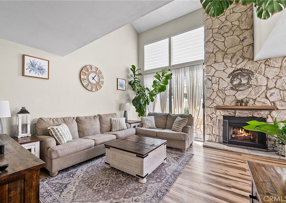 Welcome home to this stunning, fully remodeled 2 bedroom 3 bathroom corner unit with an attached two-car garage and large backyard space and quaint patio off the primary bedroom. This home blends style, comfort, and convenience in every detail. Step inside to soaring high ceilings and an abundance of natural light streaming through large windows. A floor-to-ceiling rock wood-burning fireplace adds warmth and charm to the spacious living room, while sliding doors open to your private patio – ideal for relaxing or entertaining. The newer chef’s kitchen will impress with its sleek modern white cabinetry, quartz countertops, stainless steel appliances, and stylish tile flooring. Upstairs, discover two primary suites, each with its own private bath. One suite features a walk-out balcony for enjoying morning coffee or evening sunsets. Generous storage space is found throughout, making it as functional as it is beautiful. With its prime location, gorgeous upgrades, and unbeatable price, this home is ready for you to move in and make it yours. Don’t wait – this is the one!