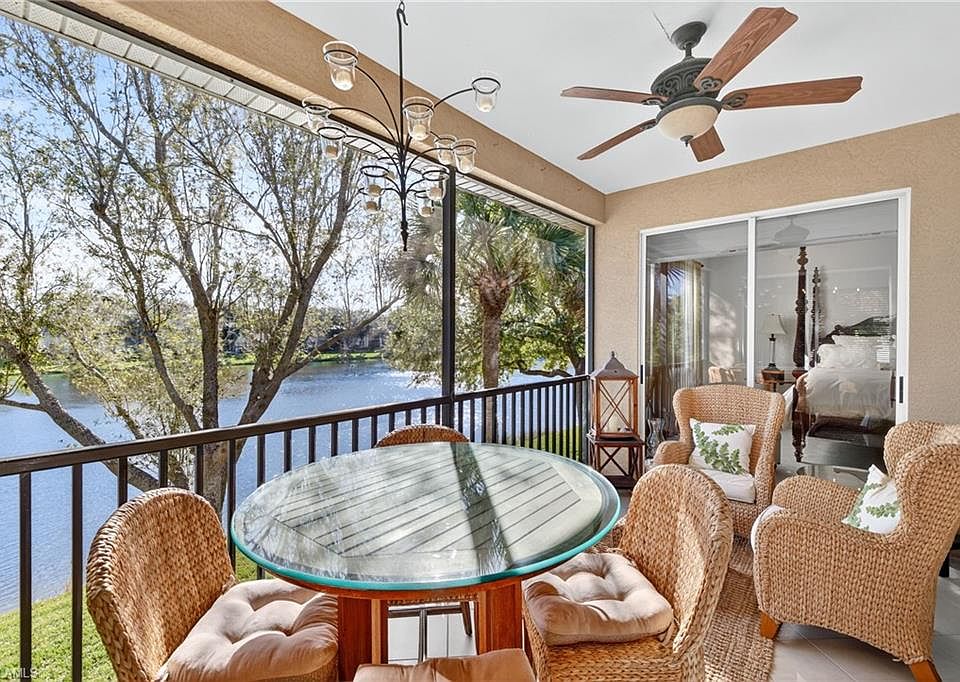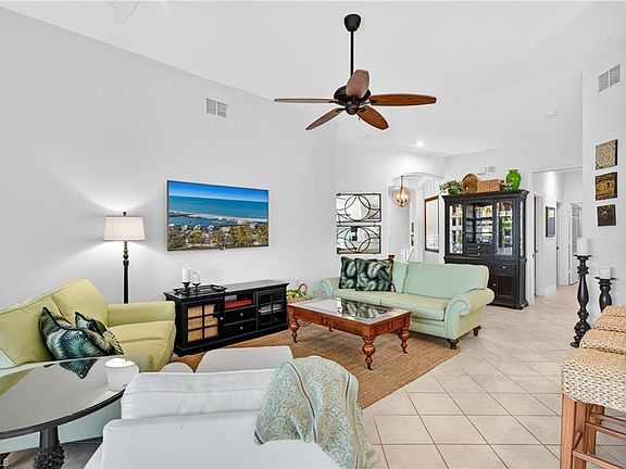 Bright & Spacious Lakeview Home with Desirable Open Floor Plan! Step into this beautiful residence featuring an open kitchen and great room layout, with chic contemporary decor and furniture. Perfect for entertaining and everyday living! Enjoy tile flooring in the main living areas and newer carpet in the bedrooms for comfort and style. The eat-in kitchen boasts a breakfast bar and flows seamlessly into the vaulted-ceiling living space, filled with natural light from its eastern exposure. The primary suite offers a tranquil retreat with a tray ceiling, private lanai access, and a custom walk-in closet system. The en-suite bath includes dual sinks and a sleek frameless glass shower. Guests will appreciate the privacy of a separate bedroom and bath, while the spacious den—complete with laminate wood flooring, a pull-out couch, and plantation shutters—adds versatility for work or relaxation. Unwind on the screened lanai overlooking the serene lake, and enjoy modern conveniences like a tankless hot water heater and a laundry room with cabinetry and newer washer/dryer. This home combines comfort, functionality, and scenic charm, and is being offered turnkey furnished. Just unpack and enjoy the resort life! If you are looking for an active lifestyle look no further: 27 holes of Championship golf, 14 pickleball, 8 tennis and 6 bocce courts. State of the art fitness center that is professionally staffed. Pelican Sound is nestled up to the Estero River with access to the Gulf. The community offers dry boat storage, kayaks, canoes and paddle boarding, along with a shuttle boat to Lovers Key State Beach Park. Minutes from RSW International airport and surrounded by fabulous shopping and restaurants. Start Living The Dream!