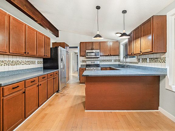 Step inside to find a spacious layout with hardwood floors that flow throughout. The main floor features a large kitchen with plenty of cabinetry, a snack bar, and a dedicated dining area. The large living room highlights a slider leading to a deck overlooking the pool and backyard area! The main level also includes two bedrooms, a full bathroom, and a master suite complete with its own private full bath!