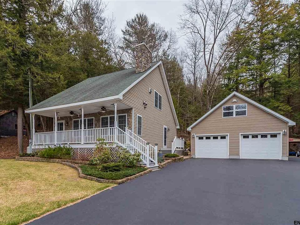Custom Cape w/ 135' deep water cove on the GSL w/ U-dock. Custom stone work, open concept kitchen & living room w/ wd burning Quadrafire fireplace. First floor full bath w/ jetted tub. Upstairs master suite has walk-in closet, partial bath & gas FP. All windows have cellular shades. Basement w/ built in shelves provides plenty of storage. Two car garage & outbuilding w/ power. Additional sleeping area (3rd bedroom) above garage. Bathroom in garage needs to be hooked up. Includes 55.5-2-29. Low Taxes!