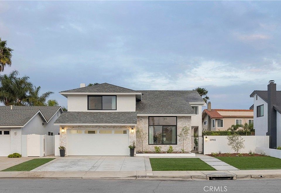 Situated in one of the most sought-after neighborhoods of South Huntington Beach, this 5 bedroom, 3 bathroom, Expanded Port Royal Model has been brought down to the studs and completely reimagined with a perfect blend of coastal charm and modern luxury. As you arrive, you’ll be immediately impressed by the home’s exceptional curb appeal, boasting fresh landscaping including sod, irrigation front and back, and newly poured concrete for a clean, modern look. Step inside to discover a large living room with vaulted ceilings and expansive windows, creating an airy, light-filled space that sets the tone for the rest of the home. The open-concept floor plan flows effortlessly, showcasing designer finishes, recessed lighting, and luxury vinyl plank flooring throughout. The gourmet kitchen is a true showpiece, featuring quartz countertops, custom soft-close cabinetry, high-end stainless steel appliances, and an oversized island—ideal for casual dining or entertaining. The spacious family and dining areas flow seamlessly together and include a cozy fireplace for added warmth and ambiance. Upstairs, the primary retreat offers a luxurious escape with a beautifully remodeled en-suite bathroom, including a dual-sink vanity, large walk-in closet, soaking tub, and separate shower with dual shower heads. Three additional bedrooms are also located upstairs, while the fifth bedroom and a full bath downstairs provide flexibility for guests. Additional highlights include an inside laundry room, epoxy-finished garage with newly installed garage door & opener, freshly poured, oversized concrete driveway, newly installed energy efficient windows and doors, whole house re-piped with PEX plumbing, whole house electrical rewire, newly installed water heater, furnace, and central A/C. Every detail has been thoughtfully curated to ensure a turnkey living experience. Located in the highly desirable Seawind neighborhood, this home is just minutes from award-winning schools—Edison High School, Sowers Middle School, Hawes Elementary, and Huntington Christian Private School. You’ll love the convenience of Burke Park centrally located within the community and being less than two miles from world-famous Huntington Beach, Pacific City, Main Street, Trader Joe’s, Whole Foods, and Target, shopping, dining and easy freeway access for commuting.