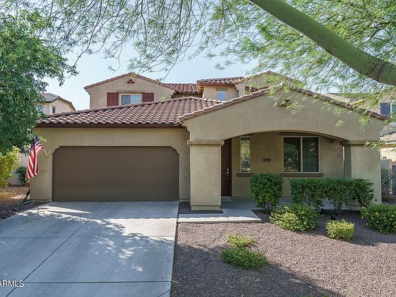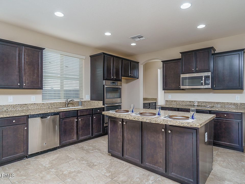 Welcome to the desirable Verrado community, where elegance and space combine in this stunning 5-bedroom, 3.5-bathroom home boasting 2,882 square feet of living space and situated on a generous 7,213 square foot lot. The gourmet kitchen boasts exquisite granite countertops, a state-of-the-art double wall oven, a sleek drop-in electric cooktop, and stainless steel appliances, all illuminated by the warm glow of recessed canned lighting. Indulge in luxurious comfort in the downstairs primary suite, featuring an ensuite bathroom that includes a spacious walk-in closet, a separate shower and bathtub for relaxation, and a dual sink vanity. Upstairs is a spacious loft with an additional 4 bedrooms, with 2 of the bedrooms sharing a jack-and-jill bathroom. The backyard is huge with easy care landscape! Do not miss your opportunity to see this home!