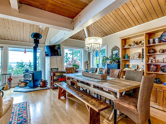 NEW PRICE! Waterfront living at it's finest! Poised on 100 ft of waterfront w/private staircase to beach, enjoy this exceptional home w/stunning water & mountain views. Highlights include spacious kitchen w/stainless appliances & center island, vaulted ceilings w/wood beams, open loft & bonus rm. Master suite w/private bath & walk-in closet, hardwood flooring, wood stove & windows galore! Exquisite landscaping w/lawn, entertainment-size view deck w/Jacuzzi, stamped brick driveway & RV Parking.