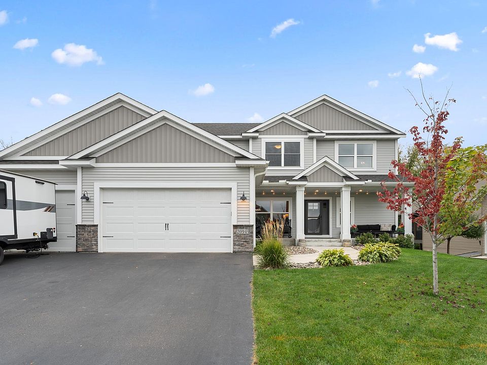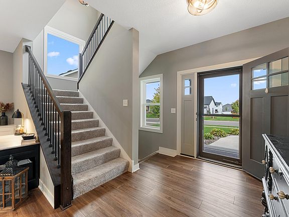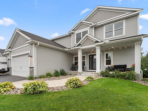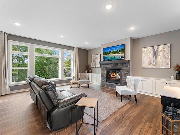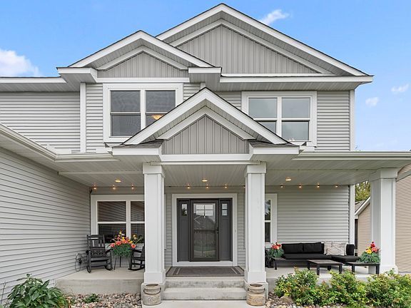 Step inside to a bright, open-concept layout with luxury vinyl plank flooring and crisp custom white woodwork throughout. The inviting living room centers around a gorgeous stone fireplace with built-ins, creating a cozy spot to gather. Upstairs, you’ll find four spacious bedrooms, including a serene primary suite with a walk-in shower, plus the convenience of an upstairs laundry room. A dedicated home office adds flexibility for work or study. The kitchen and living areas are designed for entertaining, flowing seamlessly to the private backyard retreat. Enjoy evenings under the pergola on the deck with string lights, soak in the hot tub, or gather around the paver fire pit surrounded by mature trees. Nestled in a family-friendly neighborhood with a nearby playground, this home combines peace and convenience. Just minutes from I-94, shopping, and dining, outdoor recreation, it’s the perfect place to come home to after a busy day. The hot tub stays with the house, as does the high-quality awning on the deck, covering the seating area.