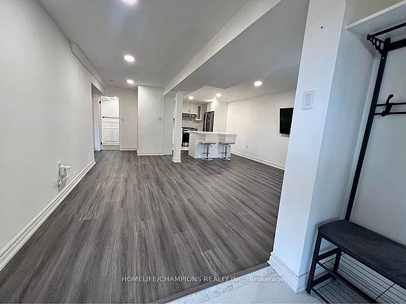 Beautifully renovated basement apartment for rent in Pickering! This modern 1-bedroom, 1-bath unit features a spacious living area, sleek glass rain shower, and a contemporary kitchen with quartz countertops, ample cabinet space, and a kitchen island with two chairs. Enjoy the convenience of in-unit full-size stacked laundry and a private walkout entrance. Tenant responsible for snow removal. The apartment includes brand new appliances, custom closets with drawers and shelves, a shoe cabinet, and an entry bench. Located in a quiet, friendly neighborhood with easy access to public transit. This stunning unit wont last. Don't miss your chance to call it home! 30 % utilities to be paid by the tenant.
