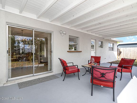 This darling home delivers a ranch/retro style fusion combined with a comforting vibe. Well-built home with trussed front & back porches that offers plenty of space for outdoor living. Split floor plan, spacious living room & a bright dining room open to the kitchen in soft creamy color amplified by the natural light. The south facing garden backs up to a wide canal that expands the feel & serenity of the backyard. New roof 2022, AC 2021, Electric panel & outlets 2021, newer garage door, new exterior & interior paint. No HOA neighborhood with plenty of sidewalks and friendly neighbors. Close to shopping, grocery shops, restaurants, schools, Downtown Eau Gallie Art District & only 12 min to the beach.