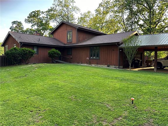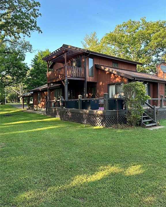 Amazing Views! This home sits on 1.74 Acres with almost 180 degree views of Timberline Lake. This 3 Bedroom 2 Bath Home sits at the end of a cul-de-sac. The Kitchen is spacious with a center island, full appliance package, space for dining table, a built-in desk area, & tons of cabinets. From the kitchen, enter the large great room with large windows & sliding glass doors which showcase the stunning lake views. Also on the main level, is the Master Bedroom Suite including an updated Bath with Tiled Shower/Jetted Bathtub, Granite Vanity Top, Double Closets, & Private Deck with Sliding Glass Door. Upstairs, there is a common area at the tops of the stairs, 2 more bedrooms, & another Full Bath. One of the Upstairs Bedrooms also features a sliding door to a private balcony with Lake Views. Outside, there is an attached 2 car garage with Storage Closets, Cabinets, & Countertop Space & a 2 car attached carport with electric, & wrap around deck with space for relaxing & hanging out. There is also a dock, storage shed, & firepit area. Call to make your appointment today!