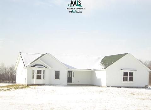 New Construction with a great floor plan. Spacious ranch home over 3 acres and a paved road. 3 bedrooms 2.5 baths Main floor laundry, Ceramic tile in baths kitchen, laundry and foyer. Full basement 2.5 car attached garage. Surrounded by newer homes and close to I-69. Immediate possession. Taxes based on Vacant land