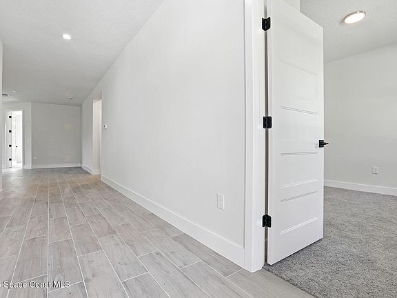 Move in Ready! $15,000 Flex Cash offered! This thoughtfully designed home features a spacious 3-car garage. The home has energy-efficient impact windows throughout. The grand 8' front door and soaring 9'4'' ceilings create an impressive ambiance, ideal for entertaining in this elegant Palm Bay residence. Additional upscale features include porcelain wood-look tile flooring, granite countertops, soft-close cabinetry, and many other premium upgrades. The owner's suite offers a luxurious walk-in shower and a large walk-in closet for added convenience. Please note that the photos showcase a previously built home with the same floor plan.