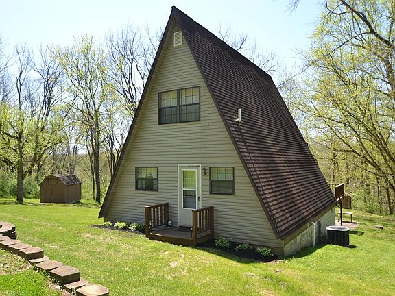 This adorable A Frame home is ready to move in. The property is impeccably maintained and has creek frontage with Ohio River access. It would make a lovely weekend home or a quiet retreat for anyone looking for peace and tranquility. 2 bedrooms, one bath with utility room. New roof.