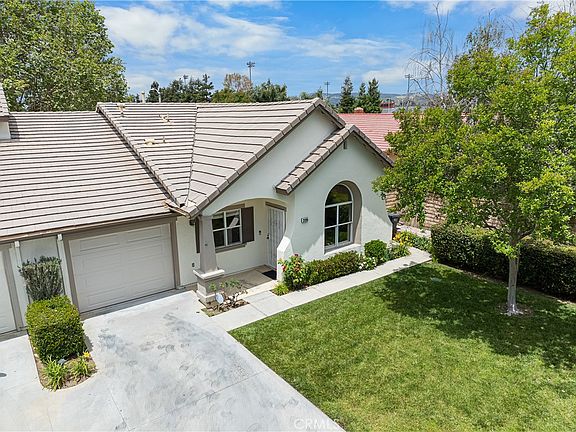 1-STORY home in the desirable, gated Casa Flores community! This lovely home is for individuals age 55 and older. 2 bedrooms & 2 baths! This desirable floorplan, which is set back from the street, has a beautiful grassy lawn & a very nice size backyard area! It has an attached 462 sq. ft., 2-car tandem garage, per the tax assessor. 4,976 sq. ft. lot, per the tax assessor! Tile entry leads to the living room with fireplace, vaulted ceilings and a view of the Santa Susana mountains. The dining area has a sliding glass door to the side yard area. The kitchen is open to the living room which is great when entertaining. Kitchen with a tile floor, tile countertops, lots of cabinets, including a good-size pantry and also with a mountain view. Gas range, microwave, dishwasher & refrigerator are all included. The primary bedroom has vaulted ceilings, a view of the backyard, a ceiling fan, French door to the yard area, a private bath and 2 closets with double sliding doors. The primary bath has a shower & good-size vanity for storage. 2nd bedroom with a vaulted ceiling, view of the backyard, ceiling fan and a double door closet. The hallway has a full bath with a tub/shower combination. The attached 2-car tandem garage has several storage cabinets, 2 ceiling fans, washer, dryer and a sink for hand washables. The backyard has 2 covered patios with plenty of space for outdoor entertaining. The landscaped yard is so beautiful and even has a lemon tree. There is also a good-size side yard area, with an automatic awning that just uses a remote to open & close it. 4,976 sq. ft. lot, per the tax assessor! There are 2 gates to enter the development. The HOA also provides a gated pool & spa. In addition, there is a wonderful shaded park area with tables & chairs for picnicking, community events, board games & relaxing in this tranquil development. Convenient location in East Simi with plenty of shopping nearby.