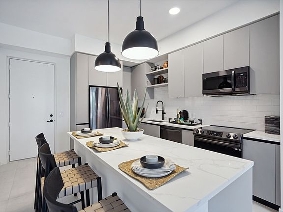 Aura Delray Beach's modern studio, 1-, 2- and 3-bedroom floor plan options feature a variety of high-quality, designer finishes that include granite countertops, tile backsplashes, stainless steel appliances, and custom kitchen islands with pendant lighting. Enjoy a state-of-the-art athletic center, a yoga and spin studio with Peloton bikes, a resort-style pool, and abundant outdoor space with fireplaces, grills, and fire pit areas. Live where a captivating community meets swift access to the best beaches, fine local dining, and boundless entertainment South Florida has to offer. Live connected at Aura Delray Beach.