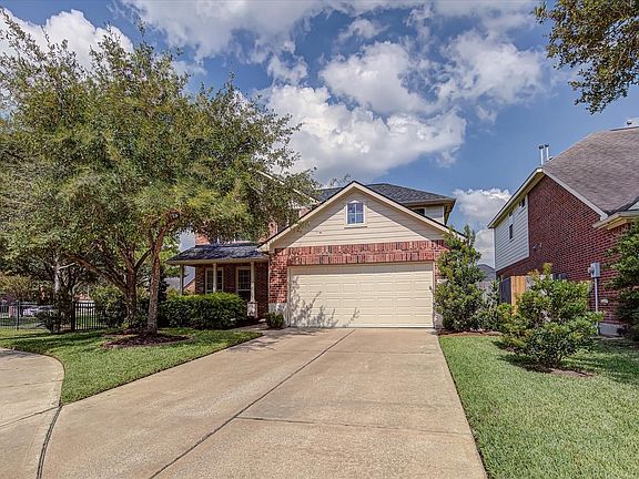 Rare opportunity to purchase a cul-de-sac lot w/ no side neighbor & private greenbelt views! This cozy home boasts an inviting covered porch. Step inside, an entryway that features a bright, open space w/ high ceilings & large windows, contributing to the feeling of efficiently maximized living spaces. The cozy living room w/ its fireplace & rich engineered wood flooring, flows seamlessly into the updated kitchen featuring granite countertops, glass backsplash, NEW MICROWAVE & high-end SS appliances. The primary bedroom offers vaulted ceilings & an en-suite bath w/ a tub & separate walk-in shower, custom walk-in closet w/ built-in shelves, drawers, & vanity station provides smart, organized storage. The property also features storm doors, NEW GARAGE DOOR, 3-year-old HVAC system & NEW ROOF. The backyard oasis is filled w/ a diverse array of plants & trees, complete w/ a garden area & a stylish pergola. Phenomenal neighborhood amenities & highly rated Katy ISD schools. Never flooded.