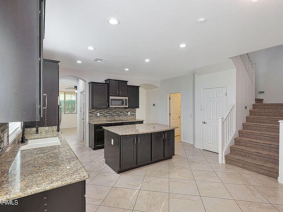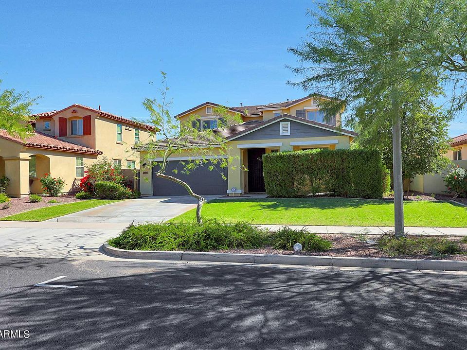 BEAUTIFUL Verrado home with great curb appeal * Located across a common area and on a picturesque tree-lined street *5 bedrooms PLUS loft * Popular Shiraz Model is super livable with a formal dining/living room at entry and a kitchen that opens to the family room *Kitchen boasts stainless steel appliances, double ovens, island with breakfast bar and a walk-in pantry *Family room is spacious with built-in media center *Tile throughout downstairs *Primary suite is on ground level and features double sinks, separate shower/tub and large walk in closet *2 car garage * Spacious laundry with storage *Low maintenance backyard landscaping and covered patio