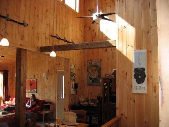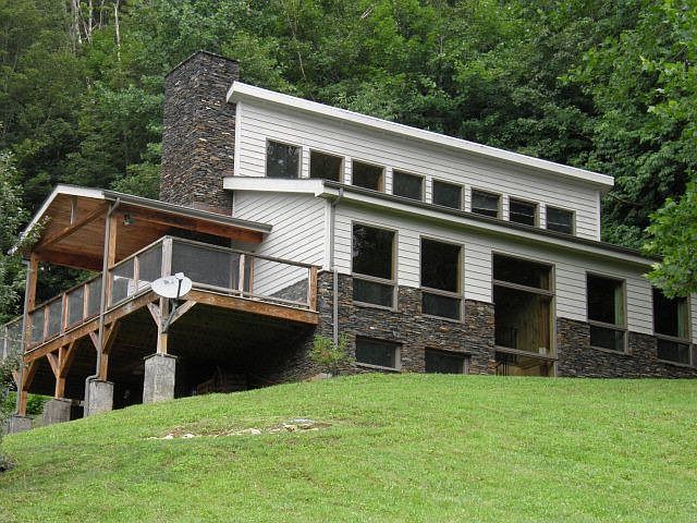 Passive solar home on 10 acres w/600 feet of river frontage on the N. Fork of the New River. Acreage offers heirloom apple trees, woods, & rich river bottom land. Foundation walls of the home are constructed with superior walls, a system of precast insulated concrete wall. The home has a clerestory roof design w/inside stone absorption, south facing Anderson windows w/25% glazing resulting in low heating bills!Incredible VIEW of Snake Mountain. House has been pre-inspected & repairs have been made. Detailed home info. sheet available. Kitchen is small but more IKEA cabinets are easily added.