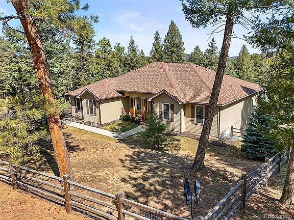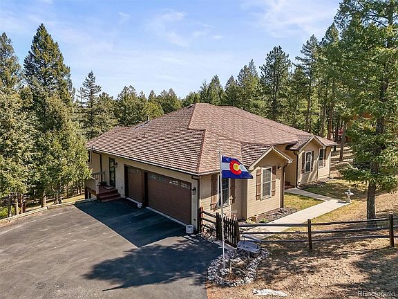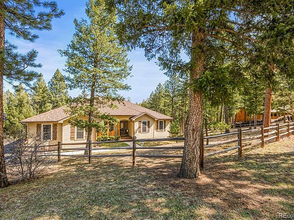 The quintessential Colorado lifestyle is here!! You will live on this forested TWO ACRES--& have all you need, PLUS A FENCED YARD!! just 10 minutes to C470 wherever you need to be EASILY! 4 bed/4 bath mountain contemporary, perfectly situated on a quiet cul-de-sac. We Coloradans love to get away, you can be in Evergreen in minutes, or go further into the mountains for all the activities this great state offers! Don't forget how quickly you can be in Denver, but you will feel like everyday living here is a VACA, you might not want to leave home... Views, beautiful in each direction....Class 4 STEEL COATED roof! Designed for easy living, this sparkling clean, move in ready home has a fun, open floor plan, filled with great natural light! Your fav spot to hang out will be hard to choose, the sun room is AMAZINNNNNG! Come see, & decide for yourself. The main floor is stunning with TWO bedroom suites! The great room boasts a soaring warm wood ceiling, check out the stacked stone fireplace, and mantel to display your treasures.... adjacent you'll see the gorgeous dining room for memorable dining occasions, notice the warm wood floor. From the kitchen you can move on to the sunroom, or out on to the fantastic deck, & WOW a built in firepit, & view the woods, if you're lucky you'll catch a glimpse of some native creatures... Back inside you can flow through the bar area, note the built in refrigerator for beverages. The laundry room has outside access too. (easy to get out for a walk or hike) Notice the powder bath, & easy access 3 car garage, w/great loft style storage! You'll be thrilled with the details here! Downstairs, prepare to be amazed! Two more wonderful bedrooms, check out how large they are, you'll have all the space you need! The main room offers huge space to work out, home office, play, and relax. You'll have access to get outside too! So much storage, &water softener & humidifier. You are going to LOVE living here! Truly very best of Colorado living!