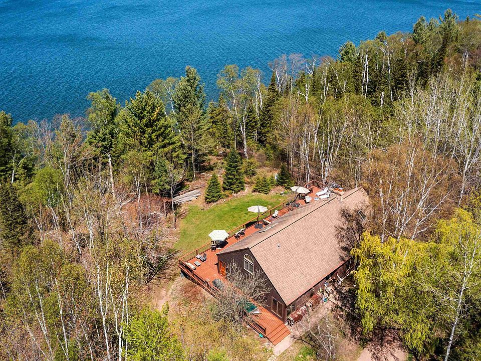Properties like this don’t come on the market often! This classic Timberpeg-built home is nestled on 9 private acres, offering unmatched craftsmanship and natural beauty. With 4 bedrooms plus a spacious loft featuring an office/sitting area and a bedroom, there’s plenty of room for family, guests, or remote work. The floor-to-ceiling stone fireplace serves as a grand centerpiece in the living area, expertly crafted and sure to impress. A double-sided fireplace keeps the primary bedroom warm and cozy on cool island nights. Enjoy seamless indoor-outdoor living with oversized sliding doors leading from the dining room to an expansive 18-foot-wide deck that spans the entire length of the house—perfect for entertaining. Relax in your hot tub and soak in the breathtaking views of Lake Superior. The huge walk-out basement, featuring double doors to the yard, offers the potential to nearly double your living space. Outdoors, a staircase leads you down to your private 400 feet of shoreline. Whether lounging on the dock or paddling your kayak, you’ll enjoy unparalleled access to the water. An oversized 40x40 garage provides plenty of space for vehicles, boats, or hobbies. Surrounded by mature trees and abundant wildlife, this property offers privacy, serenity, and a true escape from the everyday. Located just 4.8 miles from the island’s fly-in community airport, you’re never far from adventure. Come experience all Madeline Island has to offer—sailing, golf, hiking, and so much more.