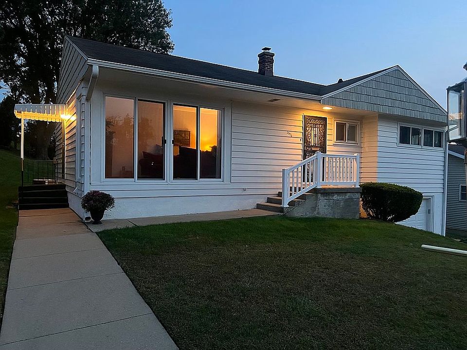 Hurry to this beautifull maintained and sunny raised ranch! Featuring a Country Kitchen with solid Oak Cabinets and a vintage brick wall. Three Bedroom all have hardwood floors under carpet. Upscale tiled bathroom. Cozy living room with wall of windows . Lower level has a large rec room, another full bath. Oversize Laundry with storage area. Attached garage also has rear storage/workshop. All this with a deck overlooking an amazing park-like yard. Walking distance to Bunker Hill Golf Course and school. This gem will be gone quickly! Call today for your private showing 920-716-8322.