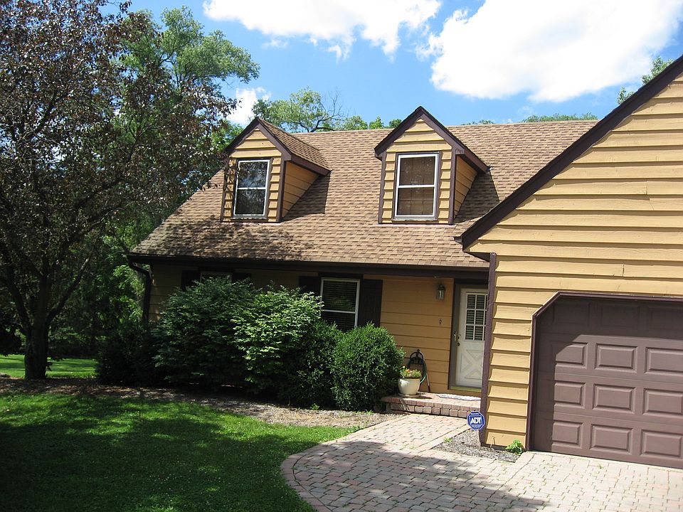 Charming home situated on a gorgeous wooded lot with brick paver drive and walkways. Recently painted exterior & deck. Meticulously maintained; updated kitchen, granite counters ,tile floor. Kitchen opens to Family Room with brick feature wall and fireplace. The 4-Season Sun Room boasts cedar ceiling, skylights, a cast iron wood stove and walls of windows overlooking fabulous yard. Three spacious bedrooms are located on the second floor. The Master Suite boasts a large bedroom, walk-in closet and separate sitting room, as well as an updated bath. There are two additional bedrooms, a hall bath, and large storage closet, as well as walk-in attic storage space. Full basement is ready for your finishing touches. Gorgeous deck overlooks a beautiful yard with mature trees and landscape. One of the nicest values in the area. Welcome home!