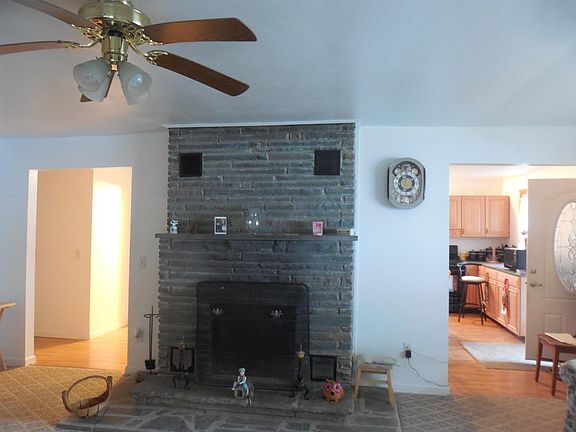 What a great opportunity! Remodeled barn into a beautiful home - last undated in 2006(upstairs) and downstairs in 2011. Four bedrooms and 1 1/2 baths. Newer heating system and hotwater tank. Beautiful stone fireplace in living room with sliders that open onto a screened porch overlooking the expansive back yard. The property has electric for 2 camping trailers overlooking the river. The property consists of a concrete pad with a separate septic system for possible rental income. Also a 24' x 24' oversized garage. So many possibilities. Almost 5 beautiful acres. Great buy.