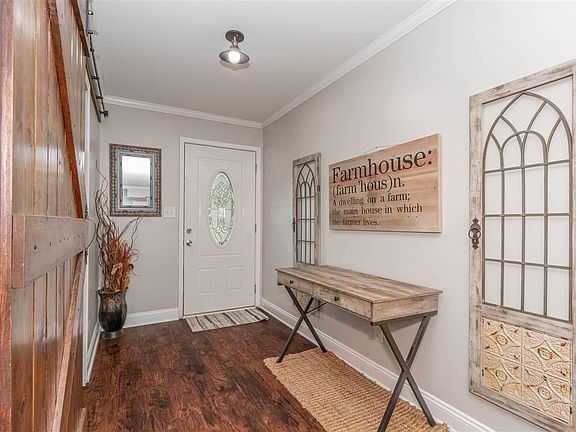 Bring your horses and farm animals to enjoy the country life while being close to all the shopping. Seller has remodeled the property from the 70's to current trends. Open the front door to the foyer and find your dining room to the right with a barn door closure. Seller converted the dining room to a bedroom with a closet and bathroom but can easily be turned back into a dining room or an office. Continue on into the open family room with a beautiful modern remodeled kitchen. Off from the kitchen is a little breakfast nook overlooking the backyard and wooded areas. Down the hallway from the family room there is the master bedroom and bathroom with two additional bedrooms and a hall bath. The seller added window shutters and landscaping. There is an unfinished basement the seller is currently using for extra storage space. Come and enjoy all the acreage beyond the cleared back and side yards.