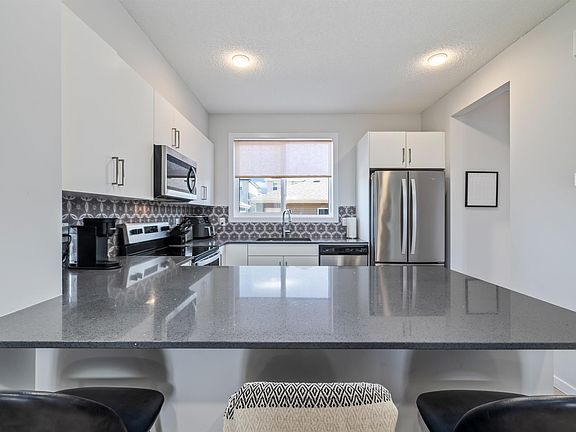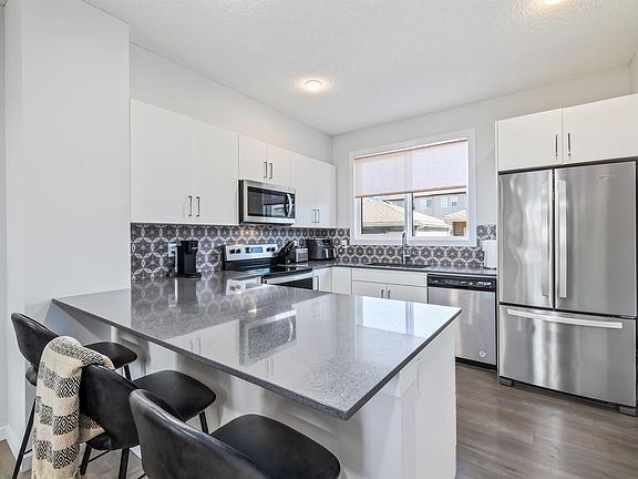 Welcome to 2097 Maple Road, a beautifully upgraded half-duplex offering close to 1,400 square feet of functional living space in a family-friendly neighbourhood. The main floor features a bright and open layout with vinyl plank flooring, quartz countertops, and a spacious kitchen perfect for everyday living and entertaining. A two-piece powder room completes the main level. Upstairs you'll find three generous bedrooms, including a large primary with walk-in closet and three-piece ensuite. The two additional bedrooms are well-sized and share a full four-piece bath. Enjoy the convenience of upper-floor laundry, a fully landscaped and fenced yard, and a double detached garage. Located directly across from a park and just steps to shopping, restaurants, theatres, coffee shops, and more. Quick access to the Anthony Henday and Whitemud makes commuting easy. A perfect place to call home.