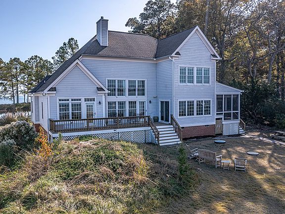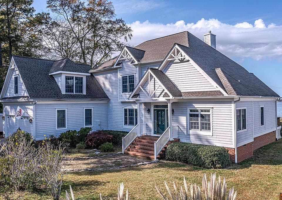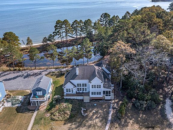 An exceptional and truly unique waterfront property with waterfrontage on two of the boundary lines of the site. The front entrance of home faces the Chesapeake Bay, and the Backyard faces the Great Wicomico River with a deep-water dock and lift. The Chesapeake Bay side offers super beach along shoreline. This site includes a coastal style home that was custom built in 2004. Floor plan is spacious. Main level has two story wall of windows overlooking the river. Living area/fireplace, dining area and kitchen with breakfast nook is open and creates ideal gathering area. Spacious bedroom and bath on main level plus an office with adjoining bath. Second level has two bedrooms, recreation/hobby room and two full baths. A screened porch and deck on riverside of home. If you are looking for a "special waterfront location" & home, it's here. Sandy Point on the Wicomico River is known for its beautiful waterfront and great community. A State boat ramp in community is also a big perk. Previewing property by appointment begins 11/11. Offers will not be considered before 3:00 P.M. Monday, 11/14. Don't miss a visit to this special location. Any questions, please call.