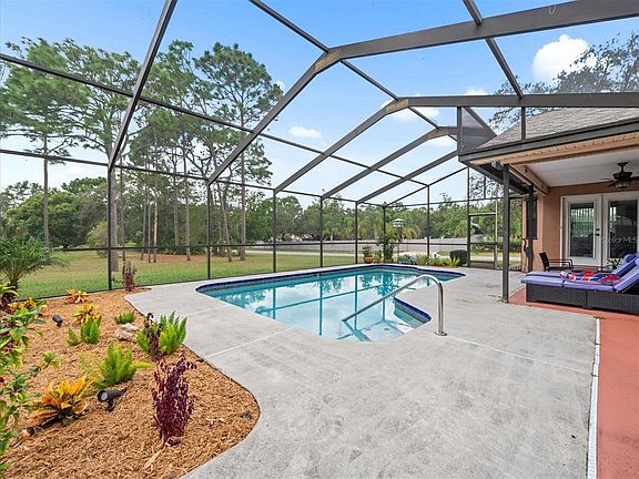 Stunning Updated Pool Home on a Quarter-Acre Corner Lot in Sought-After Spring Hill! Welcome to your dream oasis! This wonderfully updated pool home is perfectly situated on a spacious quarter-acre corner parcel in the desirable community of Spring Hill. With its elegant design and modern amenities, this residence offers a perfect blend of comfort and sophistication. As you approach, you’ll be greeted by an elongated, columned driveway that sets the tone for the grandeur that awaits inside. The lush landscaping enhances the home’s curb appeal, inviting you to explore further. Step into the heart of the home—a stunning kitchen that is sure to impress. Featuring stainless steel Whirlpool appliances, recessed and skylighting, oversized tiles, and beautiful Corian countertops with a tiled backsplash, this kitchen is both functional and stylish. It’s the perfect space for culinary creations and entertaining guests. The immense, sunken family room is a true highlight, showcasing a double-sided, tile-faced wood-burning fireplace that adds warmth and charm. Plush carpeting, cathedral ceilings with wood beam accents, and built-in shelving create an inviting atmosphere. Enjoy surround sound for your entertainment needs, and newer quad sliders that seamlessly connect the indoor and outdoor spaces, leading to the covered pool deck. Step outside to discover your private paradise! The gleaming pool, featuring a Diamond Brite finish, overlooks the lush, landscaped grounds, providing a serene backdrop for relaxation and outdoor gatherings. The covered pool deck is perfect for entertaining or enjoying quiet evenings under the stars. The vast formal dining area is adorned with bay windows and dual French door exits to the pool, creating an elegant space for family meals and celebrations. The stunning master bedroom offers plush carpeting, vaulted wood beam ceilings, a cozy fireplace, and generous walk-in closets. The master bath is a luxurious retreat, featuring maple cabinetry, Corian countertops, custom mirrors, and an oversized tiled shower with listello accents and dual shower heads. This home also boasts large guest bedrooms, one with a quad closet and the other with a double closet system, ensuring ample storage for family and friends. Additionally, a walk-in butler’s pantry/bar area provides extra space for entertaining and convenience. This home is equipped with numerous modern upgrades, including a new pool pump (May 2025), new windows and doors (2015), a roof (2018), a microwave (2023), a new pool screen (2024), and an AC unit (2018). Hurricane shutters add an extra layer of safety and peace of mind.