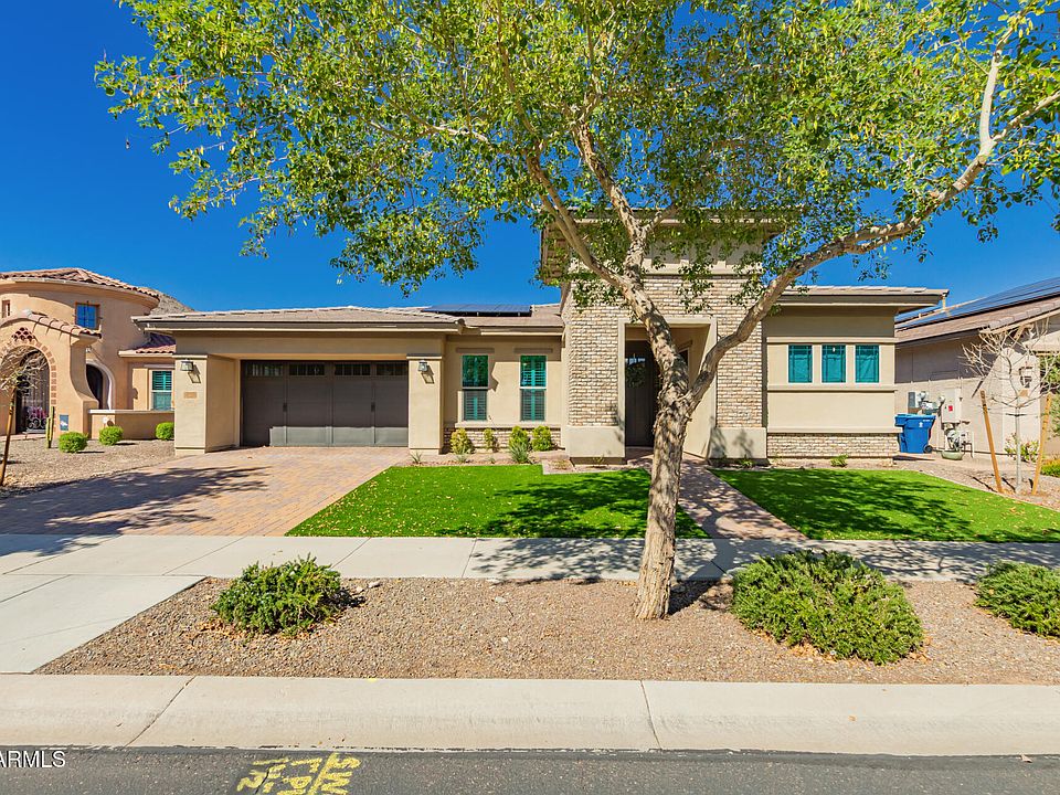 Beautifully designed home in the sought-after 55+ Victory at Verrado community. This 3-bedroom, 3-bath residence with solar combines comfort and style with an open floor plan, tall ceilings, and plenty of natural light. The gourmet kitchen features granite countertops, stainless steel appliances, a large center island, and cabinetry perfect for both everyday living and entertaining.