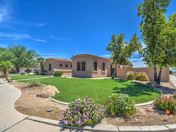 Highly sought after Roman Estates in the heart of Queen Creek allows RV's, Boats & Trailers. Single level layout features 3 bedrooms + den/ 3 full baths, plus an attached casita with separate entrance W/I closet and full bath- perfect for guests or home office. This home includes a formal living / dining room combo with open kitchen & great room with gas fireplace. 42'' upper cabinets, center island, SS Appliances and a breakfast nook. The primary suite features a large walkin closet, separate exit to the back yard- split vanities with makeup counter, shower and large soaking tub. Outside, enjoy the play pool with soothing waterfall, basketball goal, and 2 phase pool pump. New grass back yard with firepit area, large side yard and 72' x 23' paved RV pad with 50 amp plug. The home features 10' ceiling throughout, central vacuum, surround sound, security system, intercom, sun screens, and soft water loop. Both AC's have been replaced and new exterior paint 6/24. Great location to downtown Queen Creek shops, theaters, and restaurants. Also walking distance to Mansel Carter park with fishing lake, water park, soccer, tennis, baseball, and pickleball. Great Queen Creek school district and easy access to freeways.