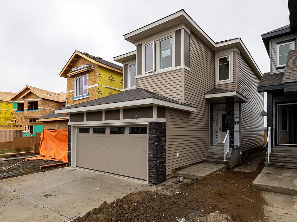 VERGE AT STILLWATER—WHERE NATURE MEETS MODERN LIVING! Nestled in the scenic Riverview area of West Edmonton, this community blends wetlands, parks, and trails with nearby schools, recreation, and shopping. This stunning two-storey home showcases 9-ft ceilings, laminate flooring, and quartz countertops throughout the main floor for a balance of function and elegance. The chef-inspired kitchen features abundant cabinets, soft-close doors and drawers, and a walk-through pantry for everyday ease. Relax in the bright living room with large windows and a cozy electric fireplace, perfect for family time or entertaining. Upstairs offers a spacious bonus room and a serene primary suite with a spa-like ensuite and expansive walk-in closet. With three bedrooms and generous storage, this home perfectly balances comfort and style. PLUS — RECEIVE A $5,000 BRICK CREDIT! PLEASE NOTE PICTURES ARE OF SIMILAR HOME; ACTUAL HOME, PLANS, FIXTURES, AND FINISHES MAY VARY AND ARE SUBJECT TO CHANGE WITHOUT NOTICE.