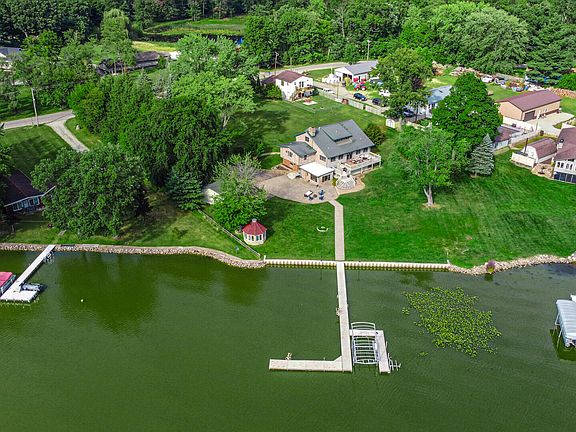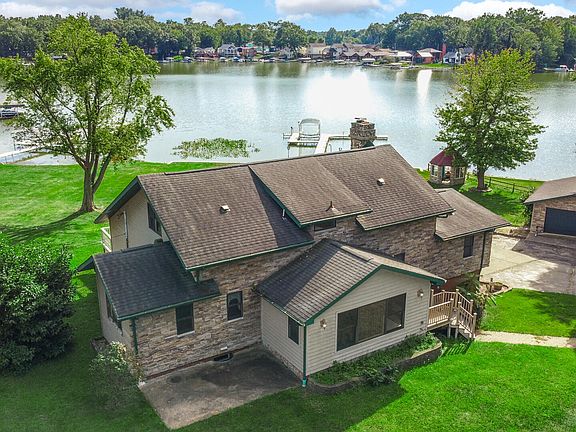 Welcome to your one-of-a-kind lakefront home! This beautiful property looking right out at Koontz Lake boasts 4500 square feet of living space, with five spacious bedrooms and three and a half bathrooms but that's not all. Inside on the main floor, you will find a kitchen that just sits off of the huge dining and living room with a fireplace. This layout is perfect for entertaining for family gatherings, holidays, or those weekend lake parties. The master bedroom is also on the main floor that includes a three-quarter shower and a separate whirlpool tub. There is also has a large walk-in closet in the master bathroom. Upstairs your will find 3 larger bedrooms and a full bathroom. The basement includes a large family room, a 2nd kitchen, another bedroom, a laundry room, and a beautiful sunroom to look out at the lake. Outside you will find two separate garages and a storage gazebo for all your lake and outside gear. The views from this home are amazing! With prime lake frontage, every day will feel like a vacation! Whether you are lounging on the 15 by 32 back deck looking right out at the lake or sipping your morning coffee or reading out by the water, you'll never get tired of everything this home has to offer. With the prime location, this home truly embodies the 'lake life' where you will have endless opportunities for boating, fishing, and other water activities! Why wait? Don't miss out on this incredible opportunity to own one of the largest properties on Koontz Lake! Take a look at the video of this beautiful home and schedule your showing today!