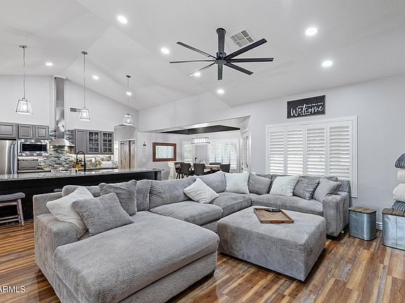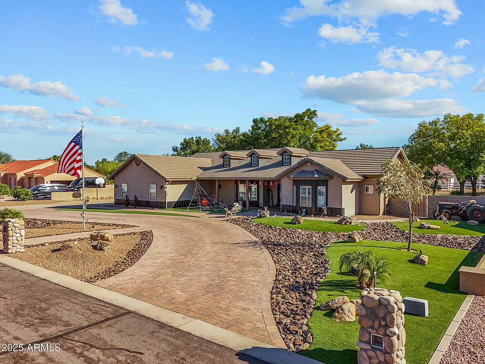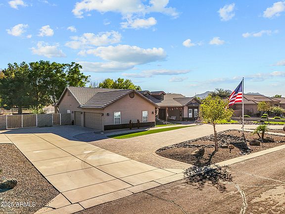Step outside to your private backyard oasis, complete with a pebble-tec pool, built-in BBQ, turf play area, and flood-irrigated landscaping that keeps the yard lush year-round. The three car garage features custom cabinetry, while the RV gate provides easy access for trailers, boats, or toys. The entire front yard has also been completely renovated, boasting a large custom paver driveway and low-maintenance turf, giving this home outstanding curb appeal. With horse privileges, no two-story homes behind, and plenty of room to expand with a shop or casita, this property delivers the perfect balance of luxury, privacy, and Arizona ranch-style living, all just minutes from top-rated schools, shopping, and dining in the heart of Queen Creek.