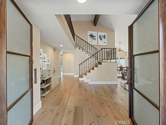 This highly upgraded cul-de-sac home seamlessly blends modern luxury with everyday comfort. Over the past seven years, numerous details have been reimagined to create a sophisticated yet functional living space. Among the updates, a heated salt water pool and spa provide year-round relaxation, while improvements like the HVAC system, Tesla Charger, metal roof, modern glass front doors, garage doors, rain gutters, and siding elevate the home’s style and performance. Lush landscaping with exotic fruit and palm trees adds to the serene ambiance. With 4 spacious bedrooms, 3 well appointed bathrooms, and 2,738 square feet of living space on an expansive 12,350-square-foot lot, this home offers the perfect balance of privacy and sophistication. Nestled in the tranquil hills, the home boasts soaring ceilings, sleek LVT vinyl plank flooring, and an open-concept layout that seamlessly connects the formal living and dining areas. The stunning tiled gas fireplace, enhanced by elegant glass cubes, serves as the focal point of the room, providing warmth and a modern touch. The kitchen is designed for both style and practicality, featuring top-tier Thor stainless steel appliances, gleaming quartz countertops, and a spacious island with a sink and microwave. Bathed in natural light, the kitchen offers views of lush greenery, the pool, and the spa, and flows effortlessly into the inviting family room—ideal for both casual living and entertaining. Upstairs, the private primary suite offers a small balcony with a peek-a-boo view, perfect for enjoying the surrounding scenery. The primary bath is designed with natural stone finishes, dual sinks, granite countertops, and a separate shower and toilet closet, creating a functional and relaxing retreat. Three additional bedrooms and a full bath complete the upper level, providing ample space for family or guests. The backyard is a true entertainer’s dream. Fully enclosed with vinyl fencing for ultimate privacy, the pool and spa area is designed for hosting large gatherings. Whether you're soaking up the sun or hosting an evening gathering, this outdoor space will quickly become your favorite retreat. Centrally located with easy access to freeways, shopping, parks, entertainment, and the prestigious Yorba Linda Country Club and Black Gold Golf Club. The surrounding schools are amongst the highest rated in the PLYUSD. This home offers the perfect combination of luxury and convenience. It’s an ideal place to live, learn & unwind.