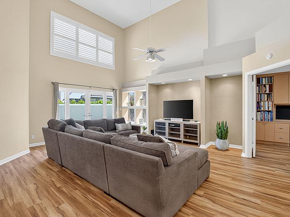 Light, bright, & spacious 4-bedroom, 3 full bath pool home in beautiful Regatta of Mission Bay. This move-in-ready home features high ceilings, a warm & welcoming layout, & a beautiful private backyard w/ travertine tile & lots of entertaining space. Recent updates include a 2021 roof, a 2 year old a/c unit, a renovated kitchen w/ wood cabinets, granite countertops & stainless steel appliances, updated bathrooms, custom closet organizers, & stylish plantation shutters. Large primary suite w/ sitting area. One full bedroom & full bath on 1st floor. Enjoy walkable five-star community amenities including a resort-style pool, fitness center, tennis courts, playground, clubhouse, & more. Conveniently located near top-rated schools, shops, dining, & just minutes from South County Regional Park
