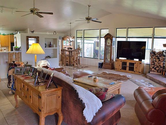 This one of a kind mini ranch and workshops galore is anyone and everyones dream home. This spacious single level ranch home is perfect for family and entertaining. The galley-style kitchen opens to the spacious great room and cozy dining area. Cuddle up next to the warm stone fireplaces in the great room and den. The 500 sq. ft. + Arizona room is all that you need to relax and enjoy the panoramic views of Granite Mountain, little Thumb Butte and the grasslands! Covered stalls, tack room, and dog run can accommodate your furry friends. The superior 3000 sq. ft. work shop fully is insulated. Paved access all the way to the heated 3 car attached garage and 3 car carport makes for easy access for your collector cars and hot rods! Come see this one of a kind home before its too gone!