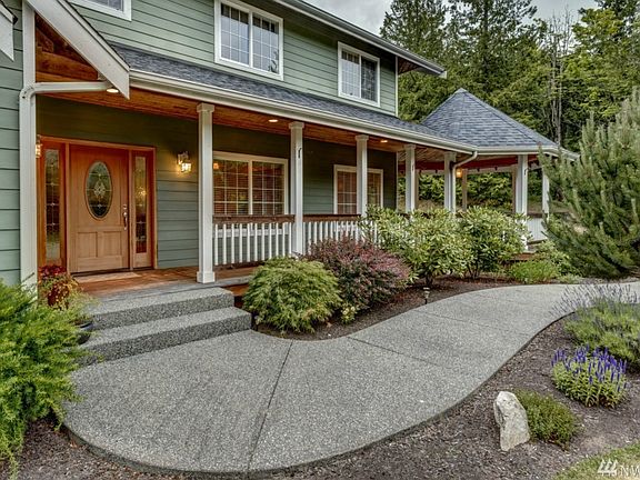 Beautiful, very private and right next to town! This custom built Silver Beach home sits on 2.3 sunny, well designed acres. Spacious open floor plan, dining rm, master on main - w/walk-in closet, master bath has double sinks & shower heads. Additional 2BR are large w/plenty of closet space. Spacious bonus rm w/exterior entry, laundry rm large enough for crafts & office, oversized 3-car garage. Outside has wrap around front porch & large deck in back w/wired pad for hot tub & lawn to play on.
