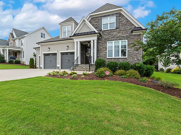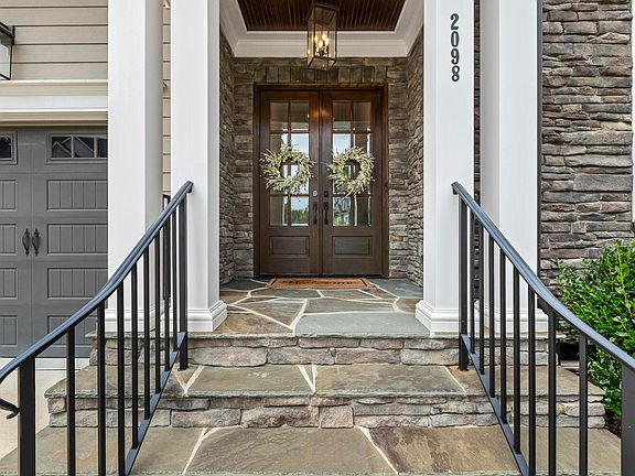 Discover unparalleled luxury in this custom-built masterpiece, where every detail has been meticulously crafted for sophisticated living. Step inside and be greeted by a bright, airy and open floorplan with stunning bleached hardwood floors that flow throughout the main level. The stunning dining room is enhanced by a breathtaking, designer coffered ceiling, perfect for hosting memorable gatherings. An oversized family room is central to the home and features built-in cabinets with floating shelves flanking the fireplace. Chefs dream of kitchens such as this with a professional-grade dual fuel gas range plus a wall oven, complemented by quartz countertops offering ample prep space. Escape to the luxurious primary suite, a true haven featuring an elegant tray ceiling and sophisticated mouldings on the wall. The spa-like primary bath offers ultimate relaxation with a lavish soaking tub and a beautifully designed tile shower. The main level offers convenience and comfort with two spacious bedrooms and a beautifully appointed shared bathroom. Upstairs, you'll find even more versatile living space, including a generous bonus room, a private guest room, and an adaptable flex room - perfect for a home office, gym, or media room. Enjoy the perfect blend of indoor and outdoor living with a breezy screened porch, ideal for relaxing with your morning coffee. Step outside and the property transforms into a private sanctuary with verdant landscaping and a beautiful flagstone patio with a wood-burning fireplace, creating the perfect ambiance for star lit evenings. A spacious 3-car garage offers ample storage and parking. This isn't just a home; it's a lifestyle. Experience the pinnacle of luxury living.